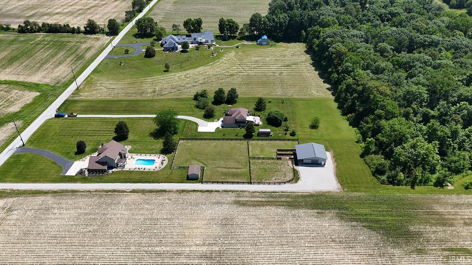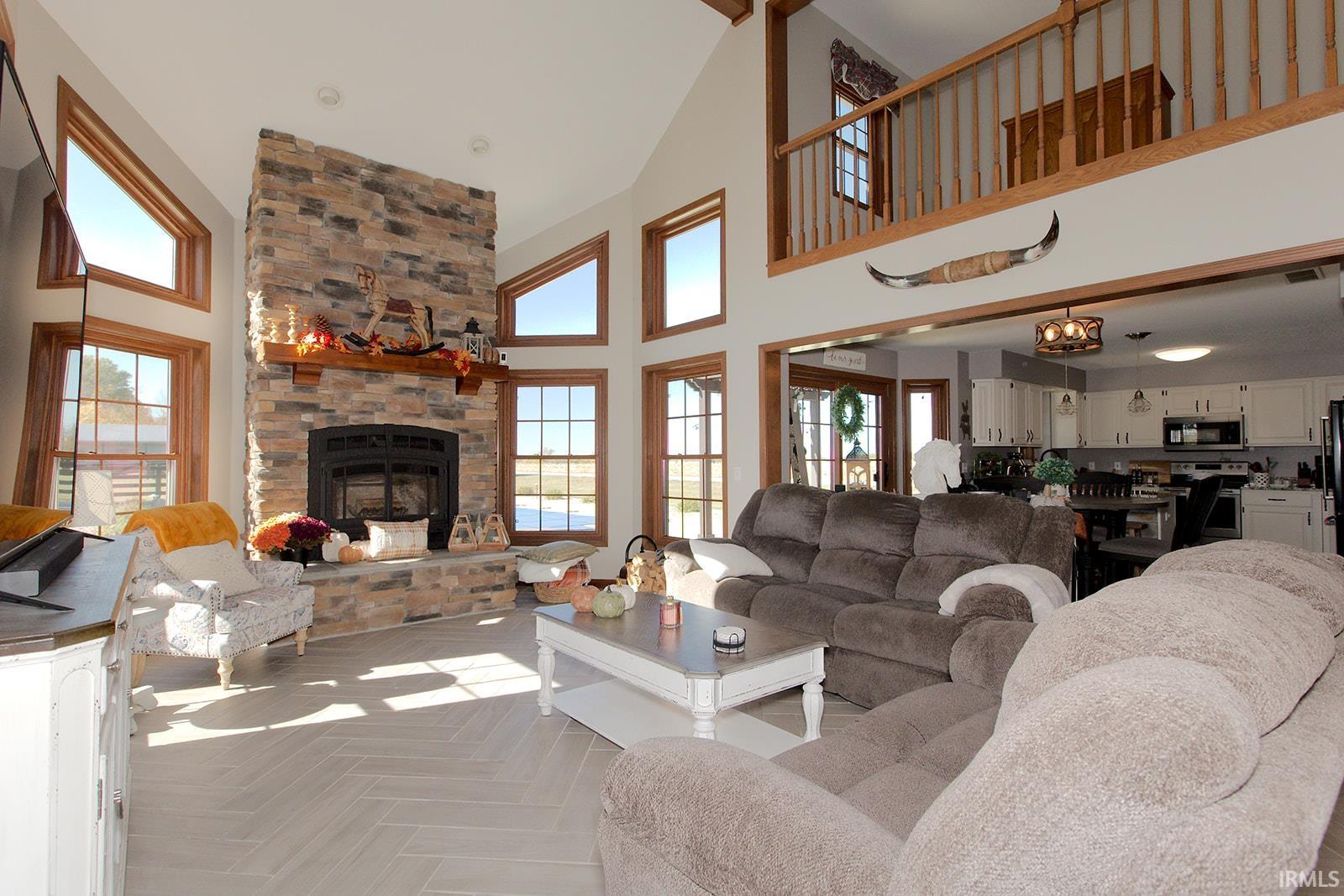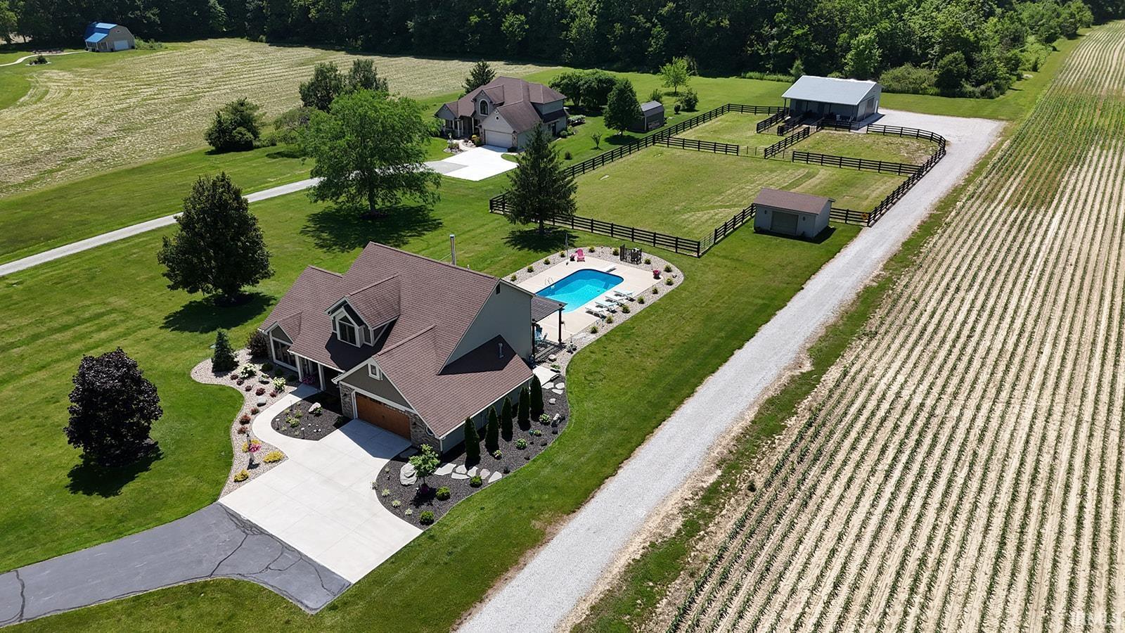 Beautiful Country Retreat! This property offers the perfect blend of comfort, style, and country charm. Ideally located, it features stunning porcelain tile floors, brand-new carpet, and an open-concept layout with a formal dining room. The kitchen includes granite countertops, a stone backsplash on the island, updated lighting, and a spacious pantry. The primary suite offers a walk-in shower, jetted tub, double-bowl vanity, and walk-in closet. Enjoy cozy evenings by the wood-burning fireplace with stone to the ceiling. Outside, relax in your private backyard oasis with an in-ground pool (12 ft deep with diving board), pergola, new landscaping, and a fenced pasture area. The property also includes a horse barn with electrical, water, and a wash bay, plus a 12x24 outbuilding. Additional features include geothermal heating, newer windows, an upgraded garage door, and a finished garage. All situated on 2 acres of beautifully maintained land — a perfect balance of comfort and country living!