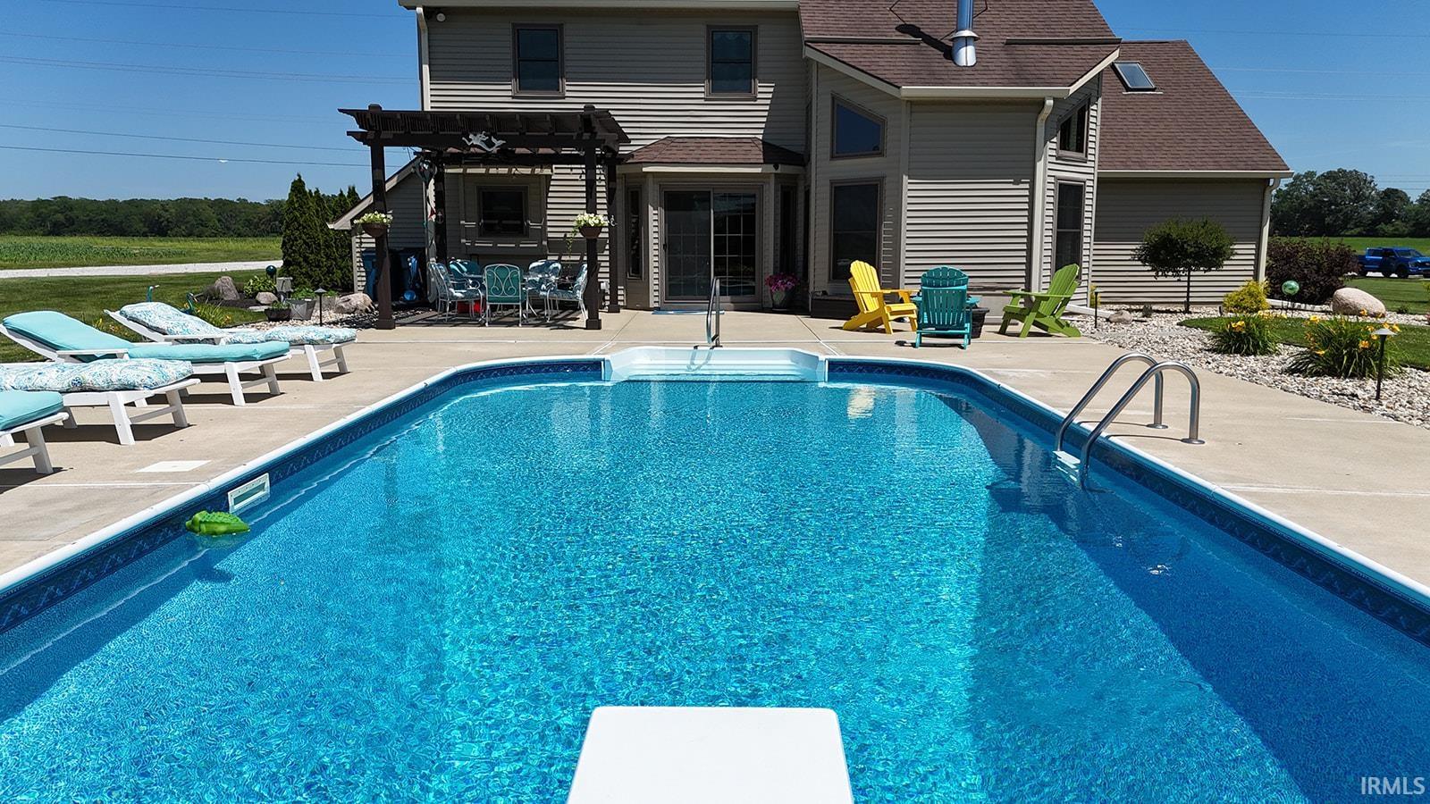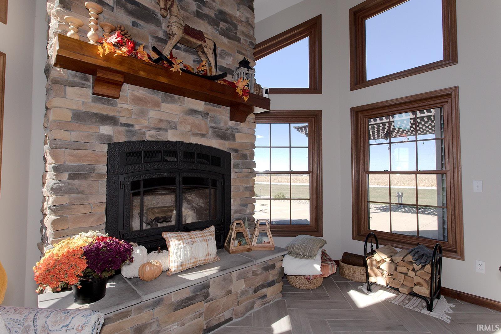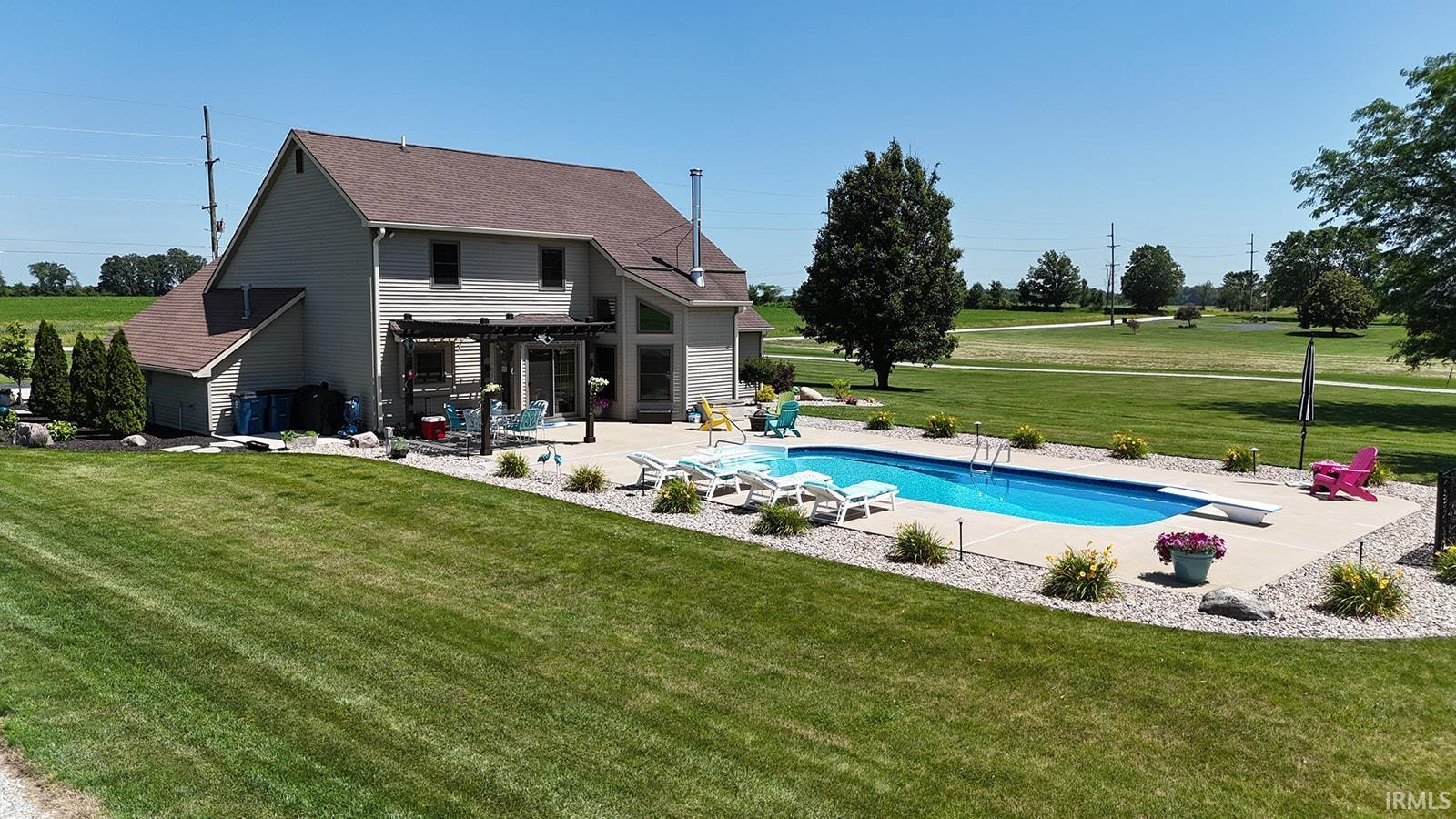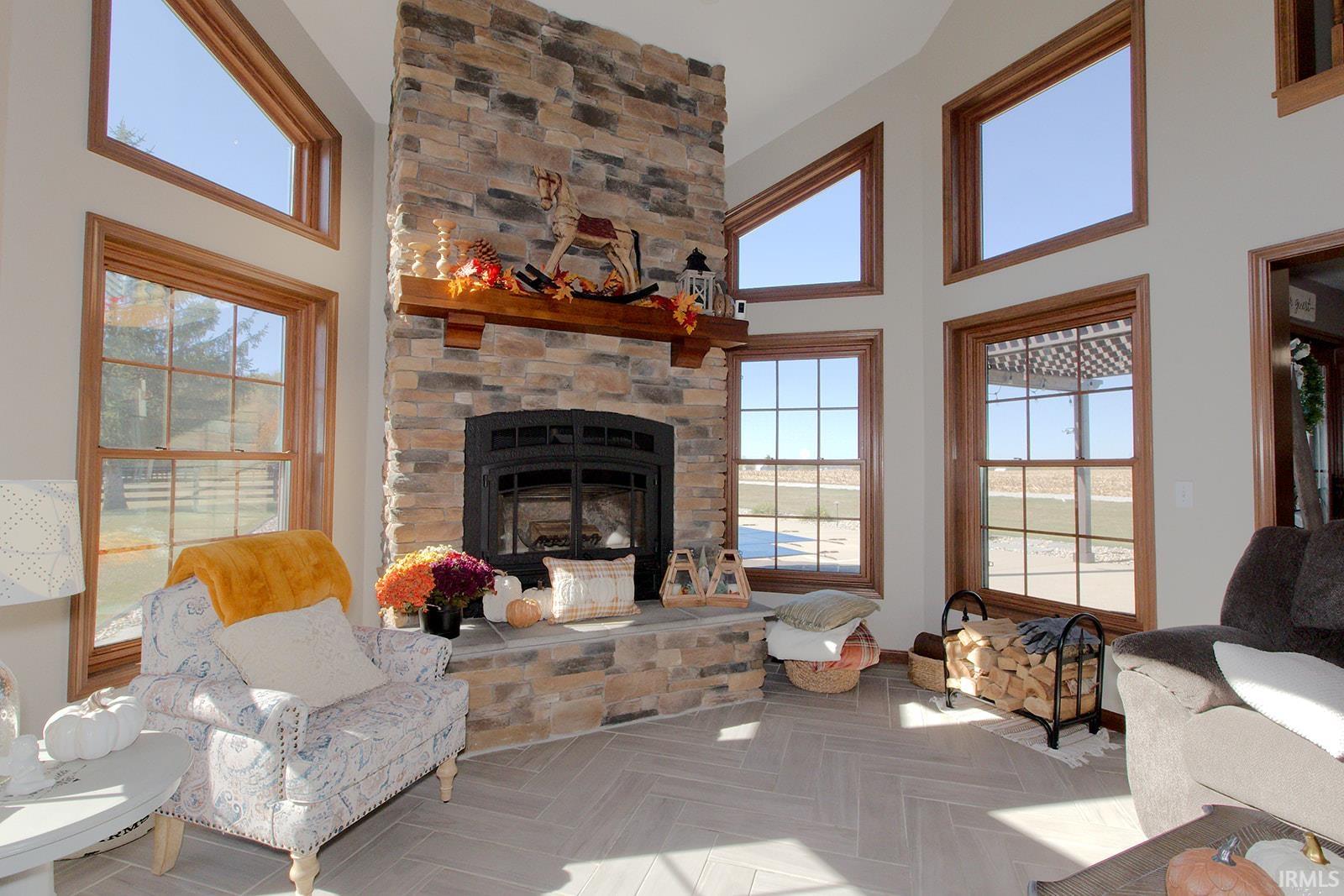 Beautiful Country Retreat! This property offers the perfect blend of comfort, style, and country charm. Ideally located, it features stunning porcelain tile floors, brand-new carpet, and an open-concept layout with a formal dining room. The kitchen includes granite countertops, a stone backsplash on the island, updated lighting, and a spacious pantry. The primary suite offers a walk-in shower, jetted tub, double-bowl vanity, and walk-in closet. Enjoy cozy evenings by the wood-burning fireplace with stone to the ceiling. Outside, relax in your private backyard oasis with an in-ground pool (12 ft deep with diving board), pergola, new landscaping, and a fenced pasture area. The property also includes a horse barn with electrical, water, and a wash bay, plus a 12x24 outbuilding. Additional features include geothermal heating, newer windows, an upgraded garage door, and a finished garage. All situated on 2 acres of beautifully maintained land — a perfect balance of comfort and country living!
