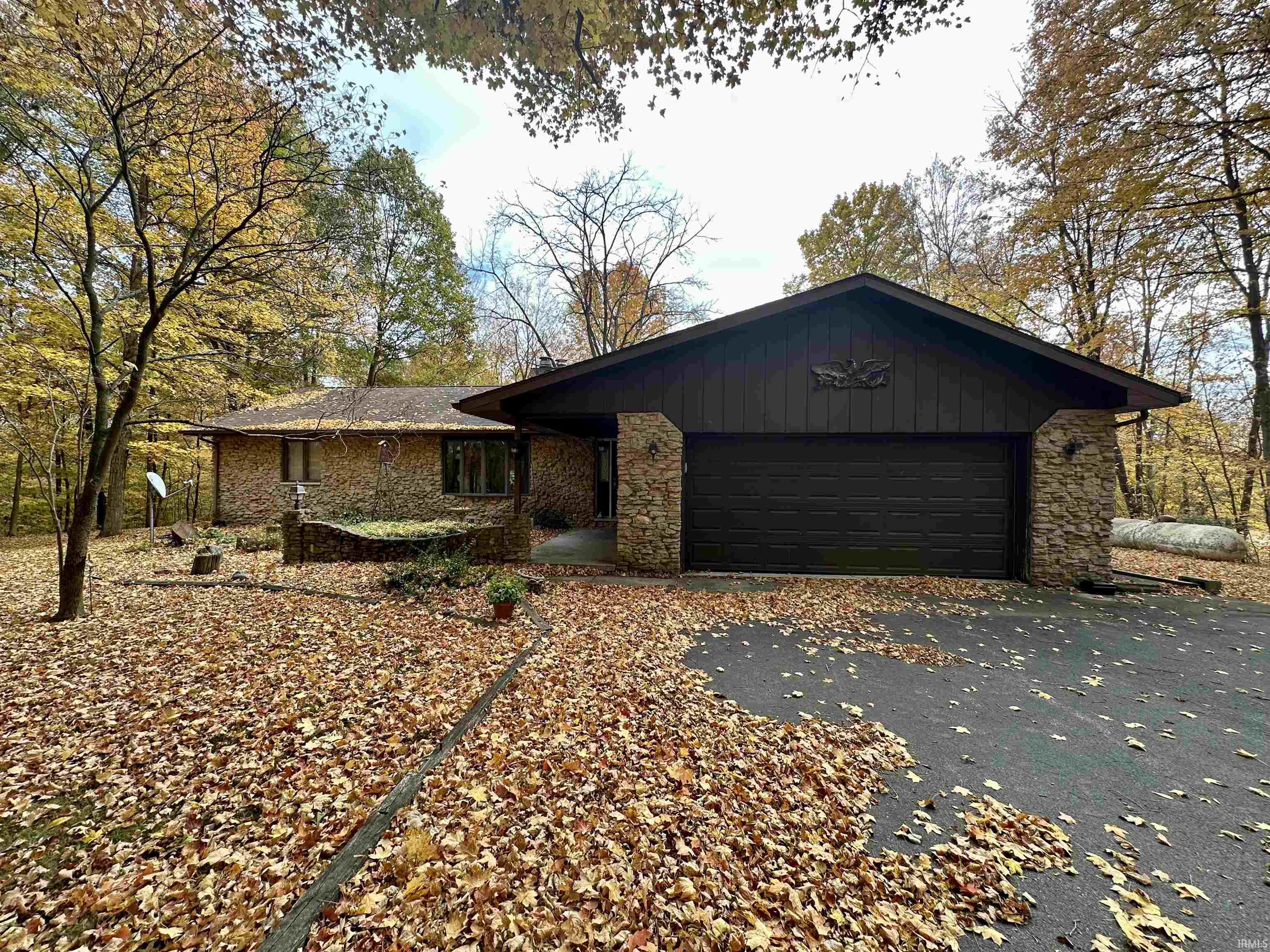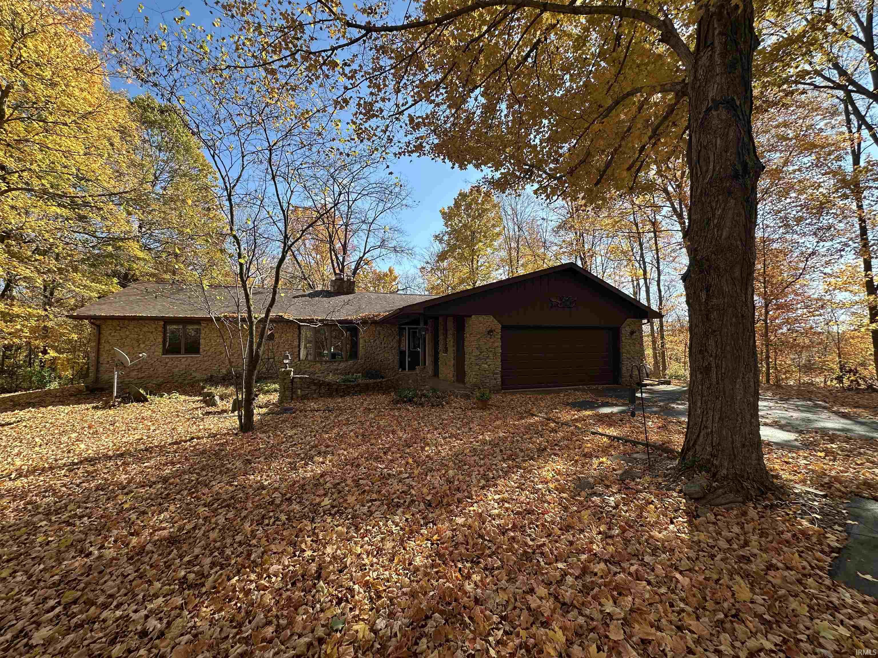 Tucked away on eight peaceful, wooded acres, this 3-bedroom, 2.5-bath home offers privacy, space, and a setting that’s hard to beat. Built in 1978, the home has great bones and nearly 1,900 square feet of living area on the main level, with a functional split floor plan that includes a primary suite, large sunroom, main floor laundry, and cozy stone fireplace. While the home's interior reflects its era, the layout and size provide an excellent opportunity for updates to make it your own. Ample storage and a complete appliance package add to its value. The property features an attached two-car garage, a spacious unfinished basement for storage or future expansion, and a detached 960 sq. ft. garage/workshop—perfect for hobbies, extra vehicles, or a home business. A private asphalt driveway offers a true sense of seclusion while keeping you somewhat close to town conveniences. If you’ve been looking for a peaceful setting and a home with potential, this property is ready for your vision and personal touch.