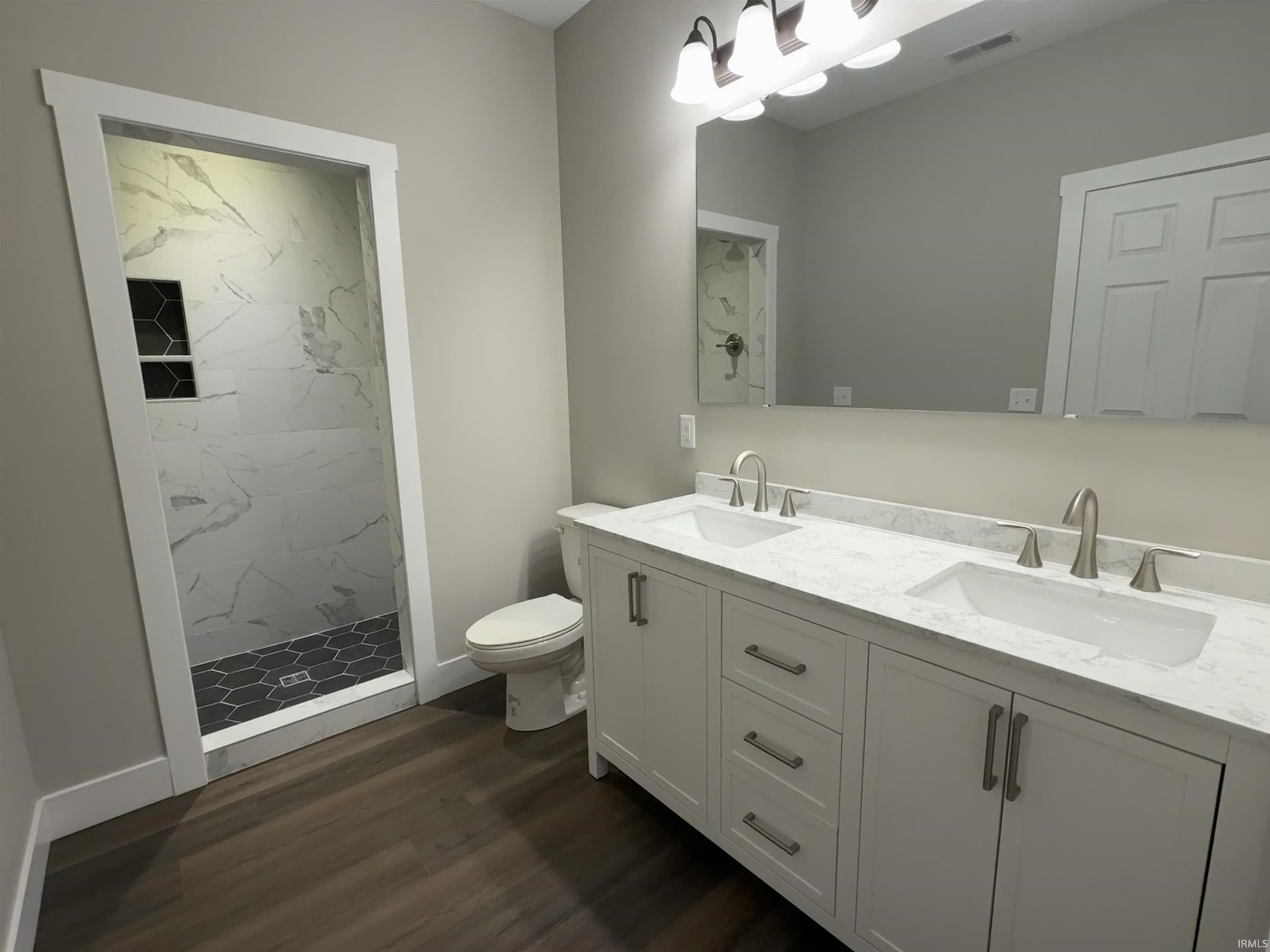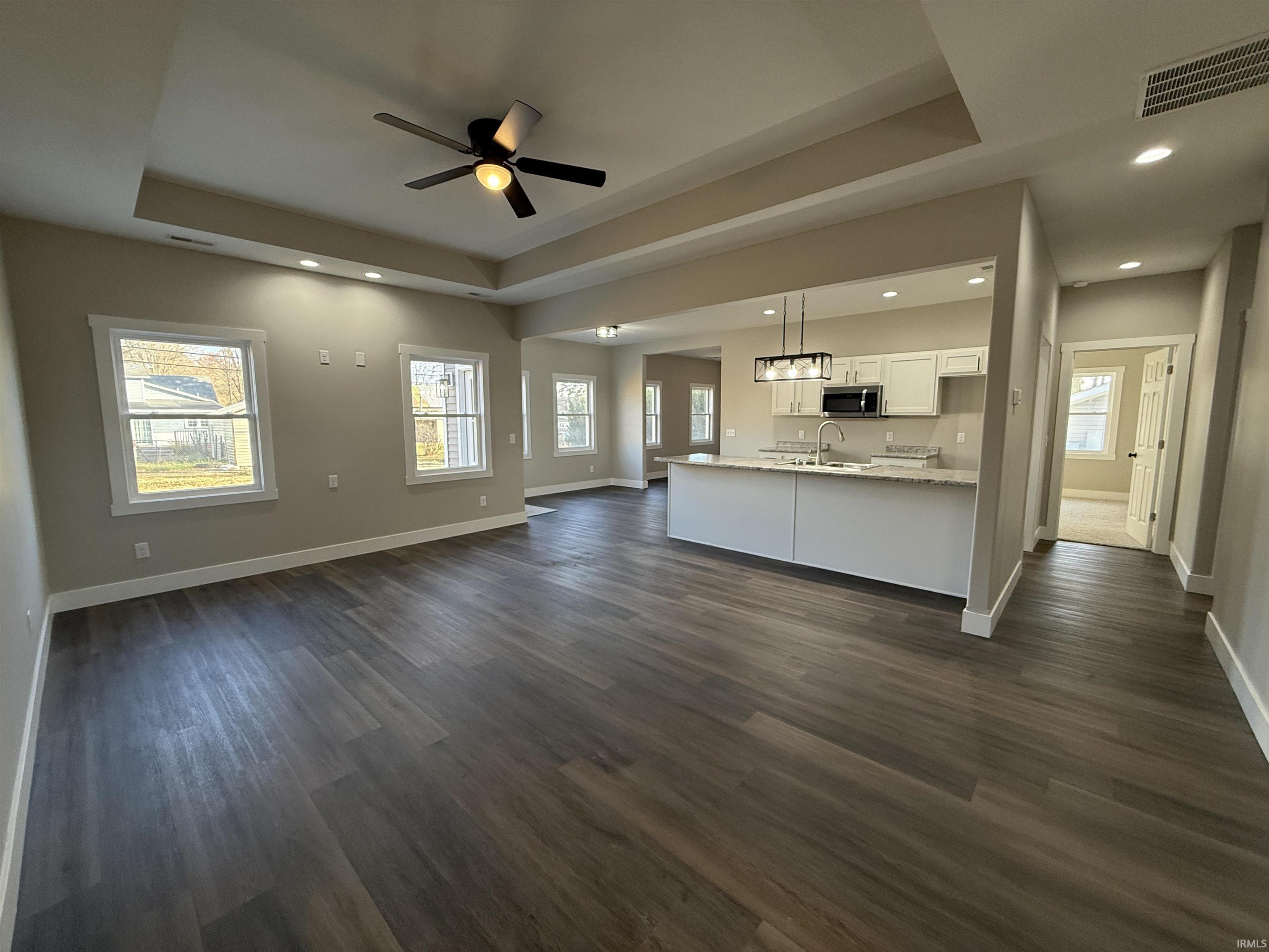 This is a brand new 3 bed, 2 bath 1500 square foot home just 2 blocks off Main Street in North Manchester. The open concept living room and kitchen lead to the breakfast nook and formal dining/bonus room. Amenities include 10' tray ceilings in the living room and master bedroom, tiled shower, walk-in closet, quartz counters in the bathrooms, and a split floor plan with the master suite on the opposite side of the house from the two bedrooms with shared bath. The large corner lot offers a great backyard with a patio on the back of the house. The kitchen comes with a stainless dishwasher and microwave.