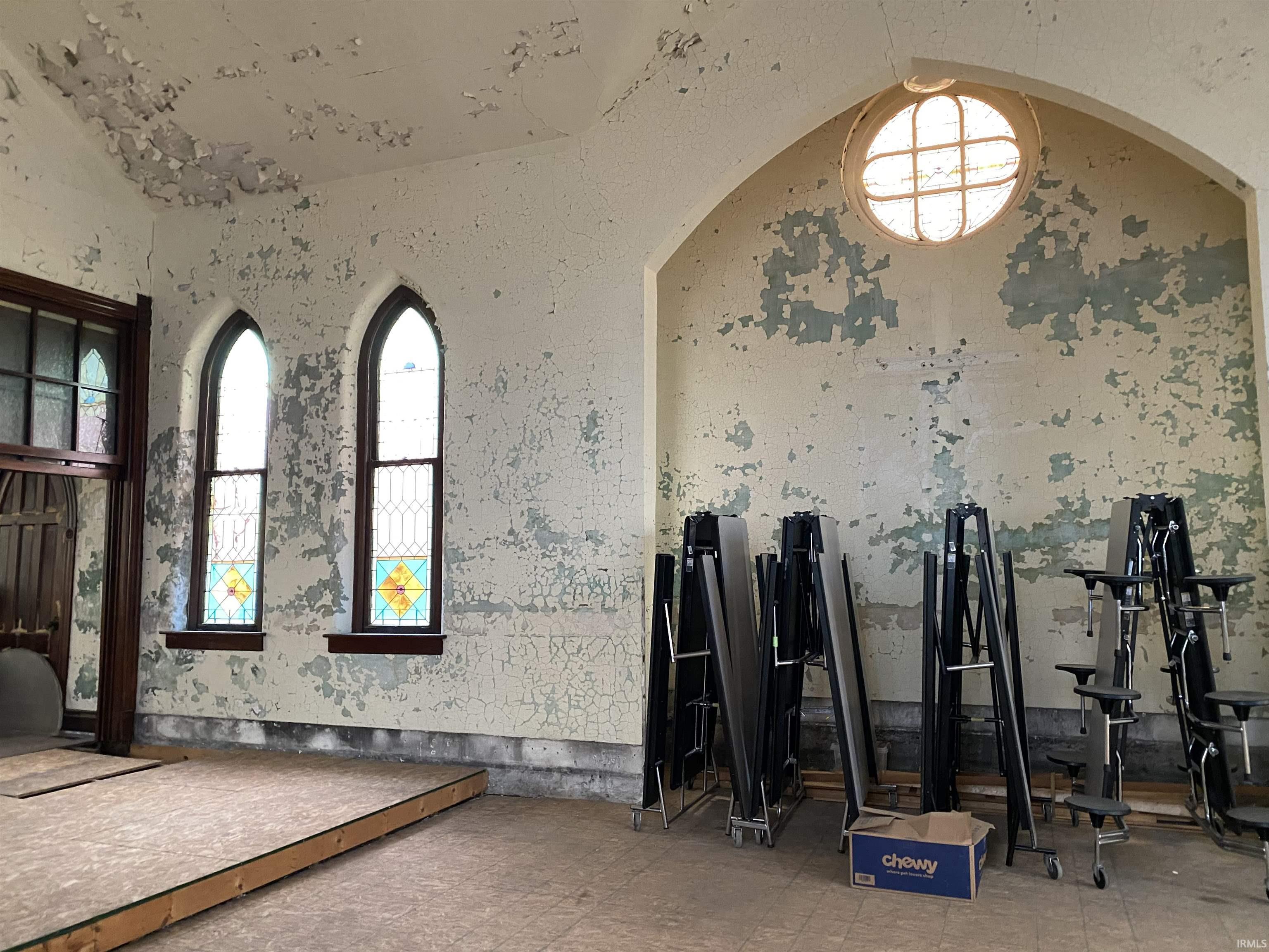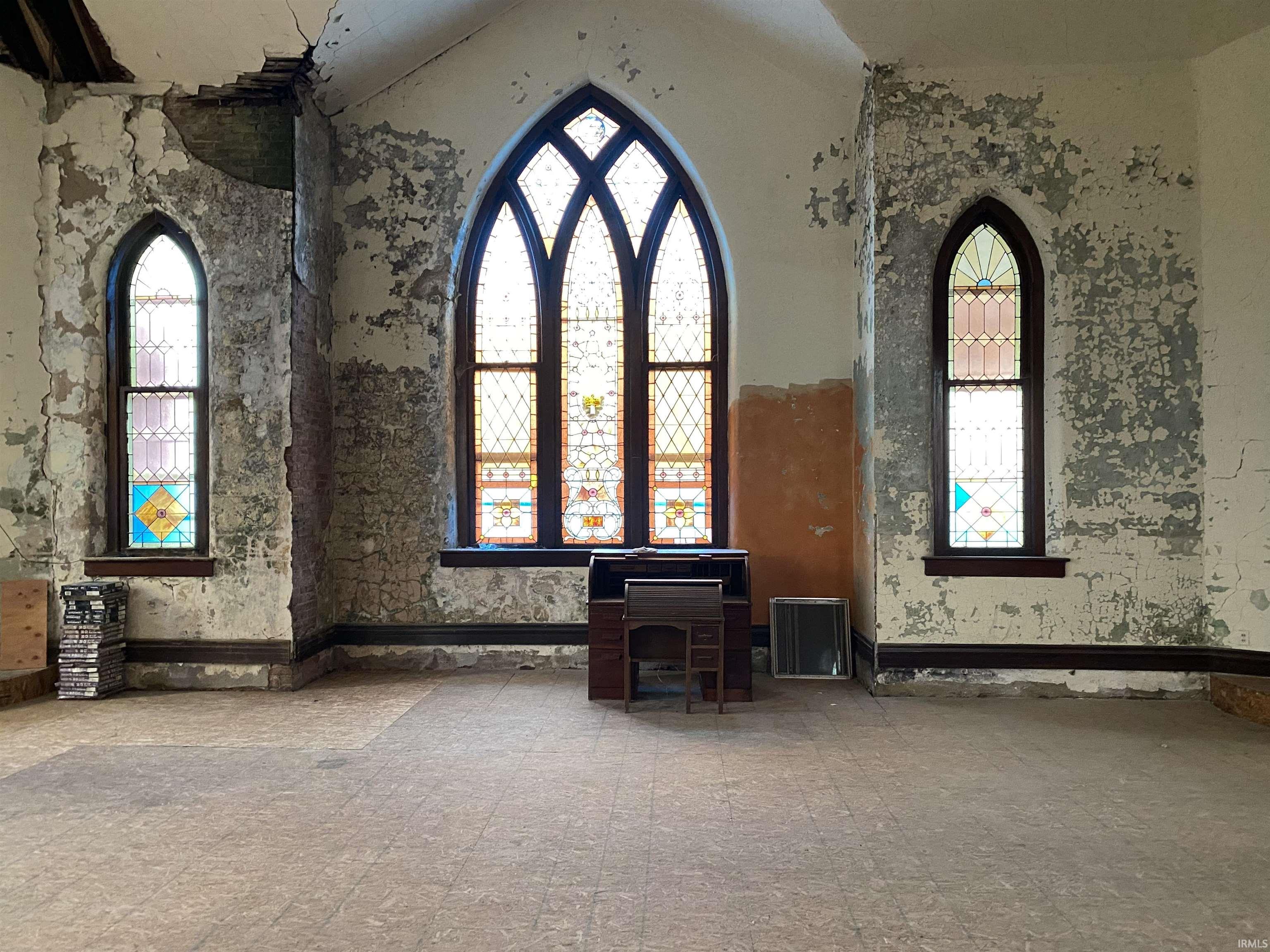 Charming Brick Church with Multiple Lots! Due to unforeseen life changes, the sellers have decided to take their church in a different direction. In the brief time they have owned the building they have completed multiple repairs, lots of cleanup, and much needed maintenance to this blank canvas to help jumpstart your dreams for this property! Repairs include but are not limited to: New Septic System, Roof Repairs, Window & Door Repairs, Paint Scraping & Large Amounts of elbow grease to clean the property up & it also has a newer well! This unique investment opportunity is now ready for you to put your touches on to possibly use in a variety of capacities such as, a rental, office space, or possible event location and could easily be adapted to a multi-family apartment rental! With its beautiful stained glass windows & distinctive character, this property offers a blend of historical charm & modern potential. Extra Lots leave room for parking, storage or expansion opportunities. Whether you're looking to invest in a rental property or seeking a creative space for your business, this versatile property is ready for you!