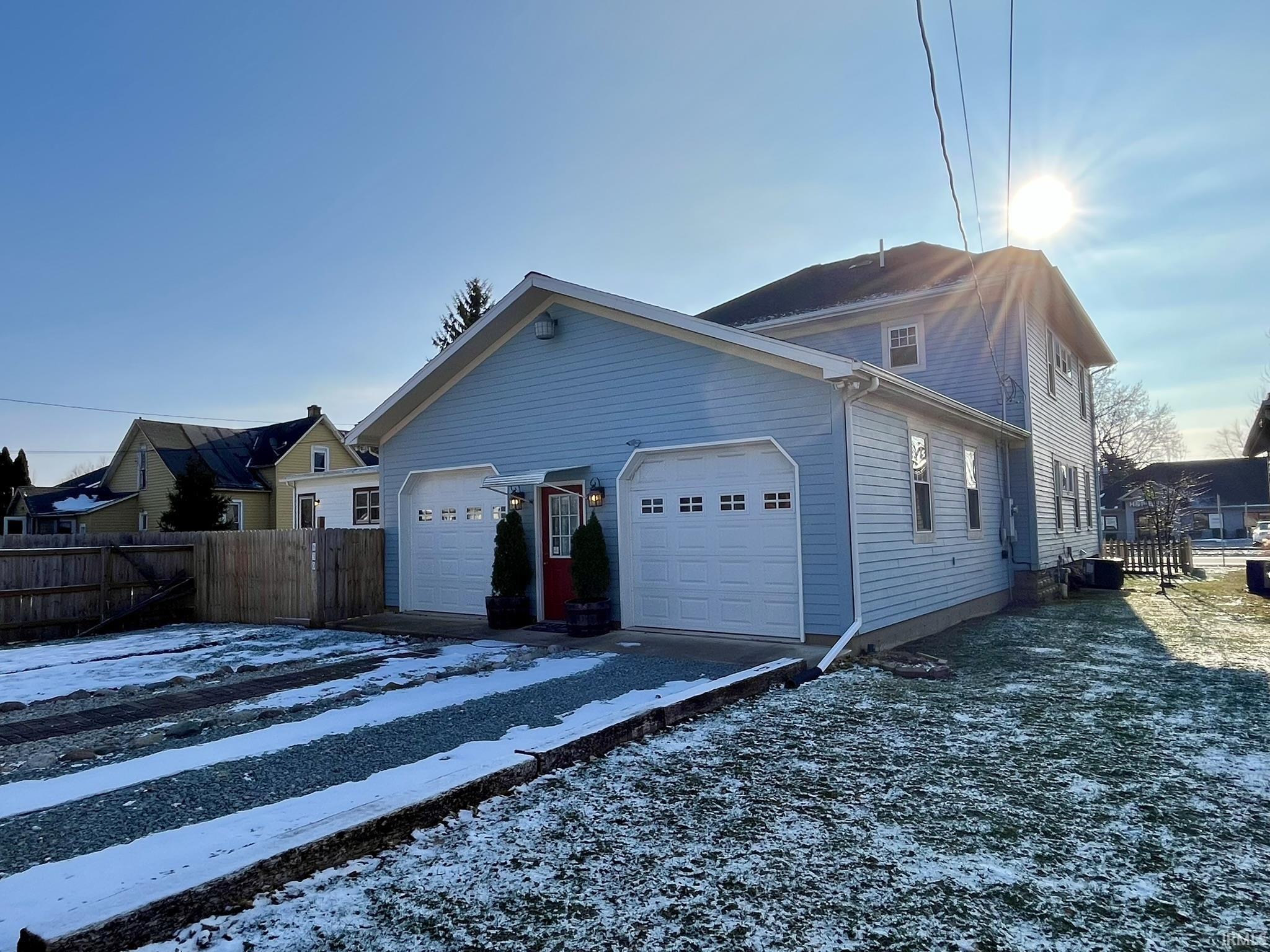 This spacious 4 bedroom, 2 bath home is close to dining and shopping in Peru, and carries the character of a turn-of-the-century build with original woodwork and a built-in cabinet in the dining room. Working transoms, some antique light fixtures, and claw-foot tub in large, main-level bathroom. Main-level laundry area. Abundant natural light coming from vinyl replacement windows throughout. Huge 2-car attached and insulated garage, and plenty of parking in back. Front porch, fenced in front & side yards with landscaping. Possible 5th bedroom on main level. Updated bathroom & kitchen fixtures; fresh paint; updated electrical; wiring in place for a generator; water heater 3 years old; central air 5 years old. Appliances included. Sale to be As-Is.