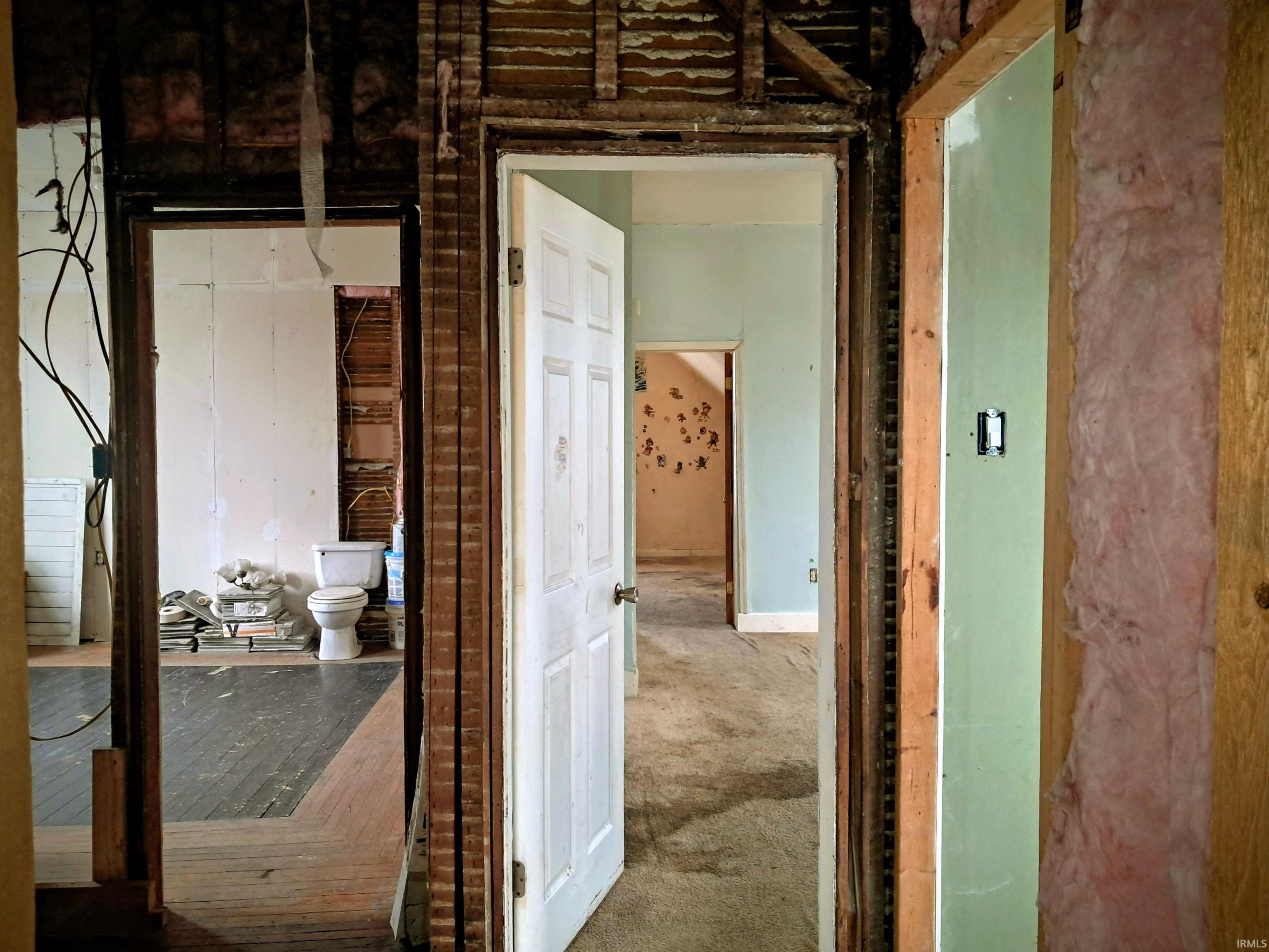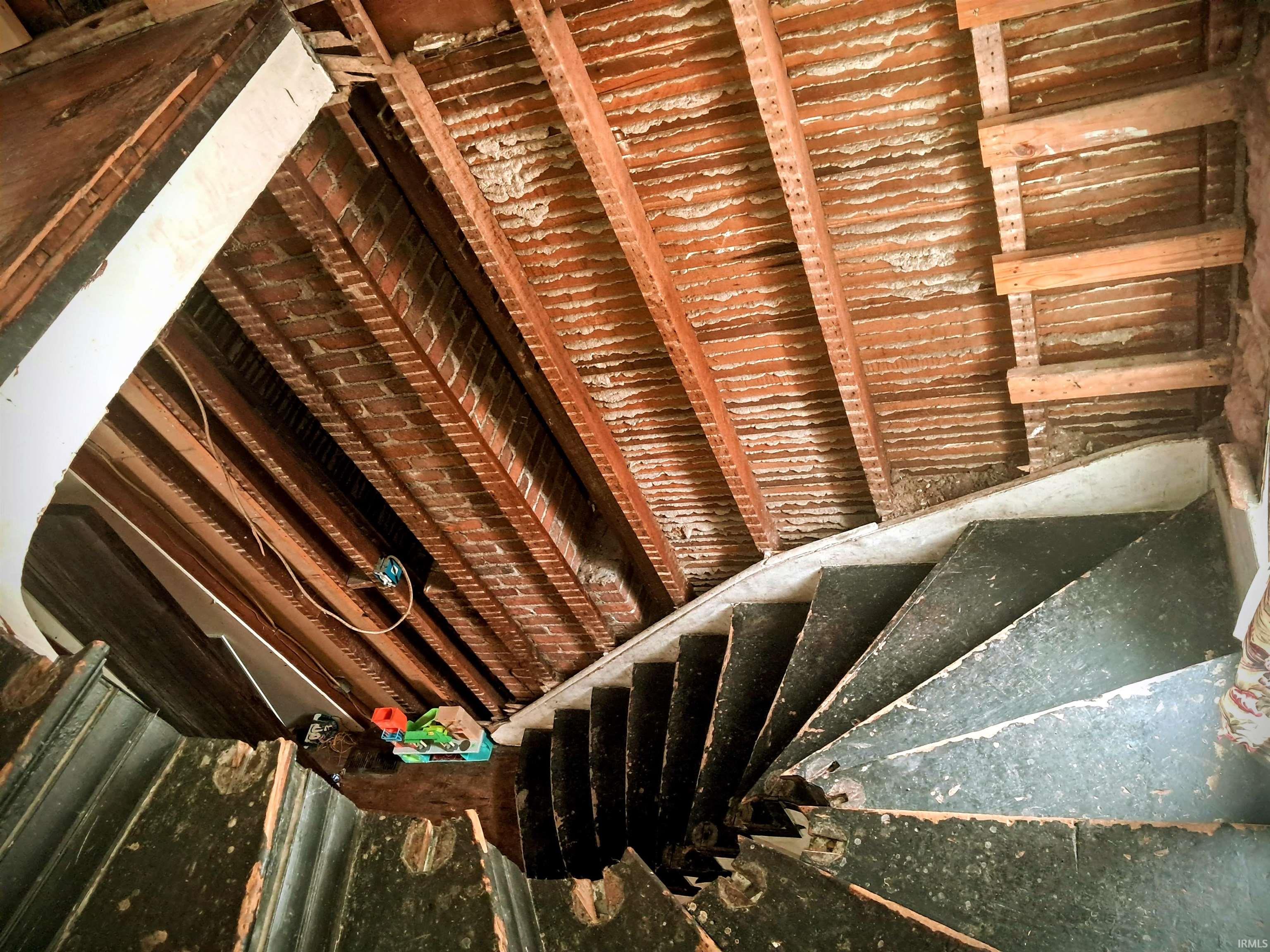 Investors take notice! Motivated seller! This unique home is in need of a full rehabilitation. The main level features a living room with a fireplace, a prominent winding staircase and a kitchen with basement access, laundry room, sliding glass door to a deck, dining room, and one bedroom with an attached half bath. Upstairs includes three bedrooms and one full bath, plus a private suite with its own bath and separate rear staircase access. Most of the windows and siding updated within the last 5–6 years. Selling AS-IS Cash.