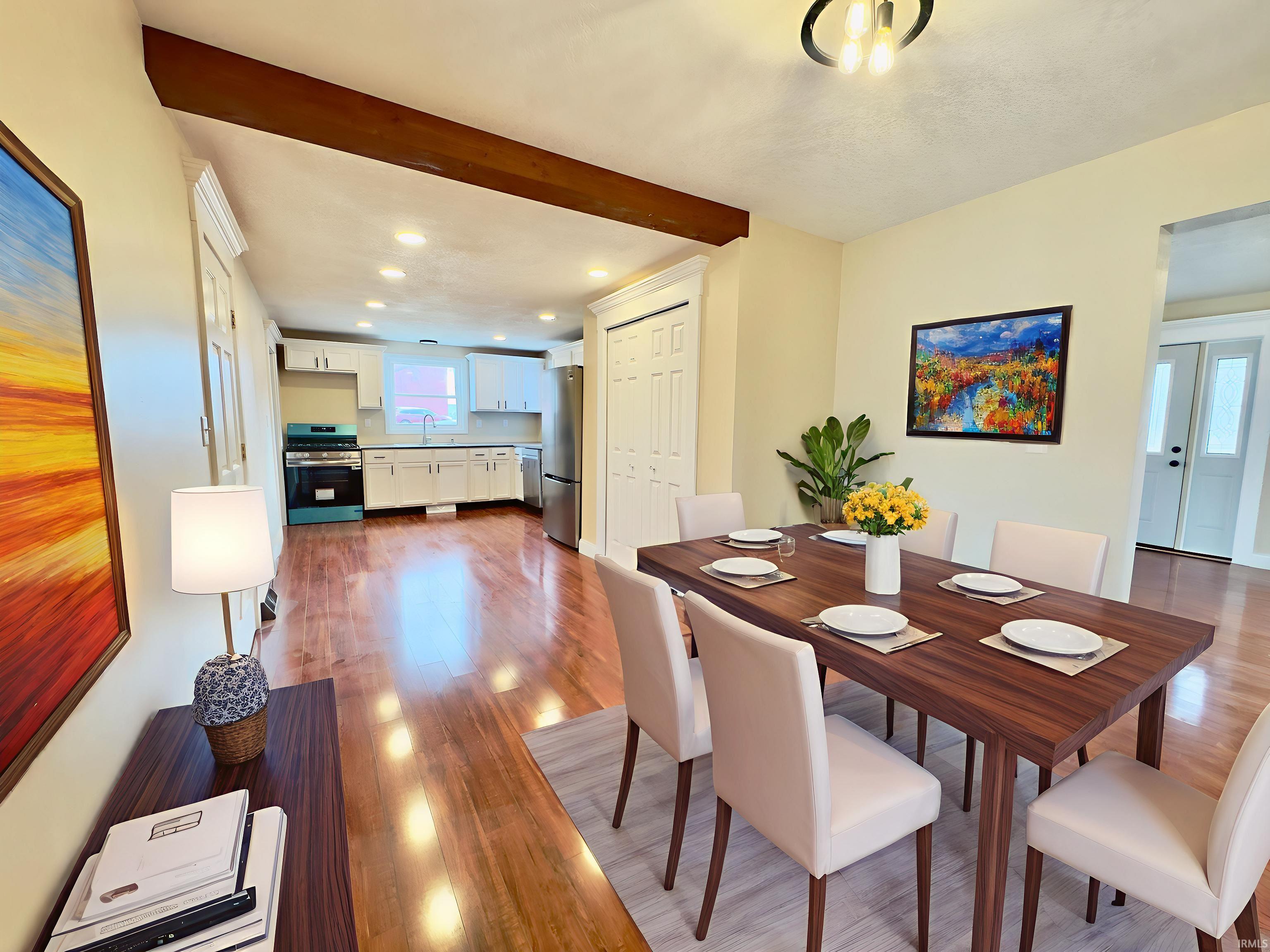 Welcome to this beautifully updated 3-bedroom, 2-bath home in Macy offering modern upgrades, generous space, and small-town charm. This move-in ready property features a brand-new roof, new furnace, new central air, new flooring throughout, new quartz countertops, and all new kitchen appliances- providing peace of mind. Inside, you’ll love the refreshed kitchen and updated finishes that create a clean, modern feel. The spacious layout includes 3 comfortable bedrooms and two full bathrooms, offering flexibility for families or guests. A bright and versatile sunroom adds even more functional space; perfect for a home office, playroom, or additional hangout area. Step outside and enjoy the large lot with plenty of room for outdoor entertaining. The oversized detached two-car garage provides excellent storage and workspace potential. This home is within walking distance to the scenic Nickel Plate Trail, perfect for biking, running, or evening strolls, and just a short walk to the local “Field of Dreams” park, making it easy to enjoy everything this community has to offer.