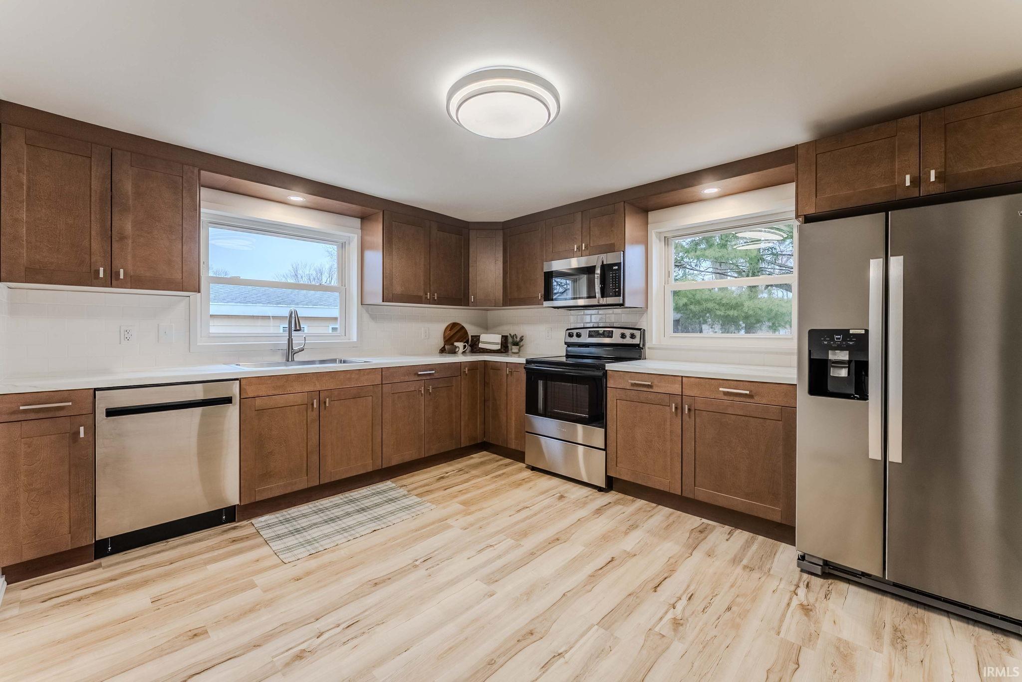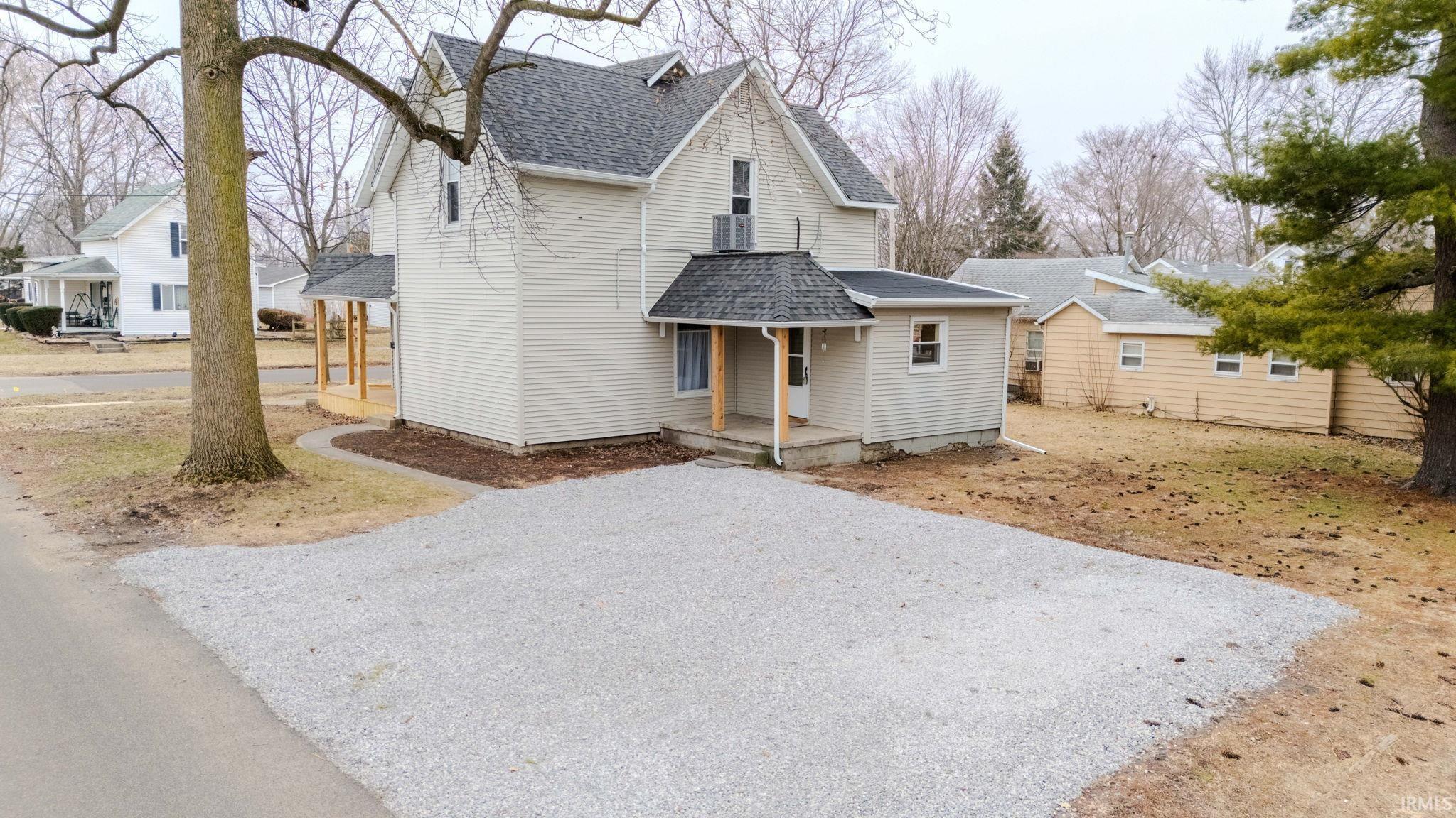 This beautifully remodeled home is move in ready & waiting for its forever owners. Get your porch swing put up on the wrap around front porch & relax. Was zoned Single family but was turned into a duplex, new owners took it back to it's original single family home, opening up the hidden beautiful stair case & more. This home features up to 5 bedrooms, 2 bedrooms on main level could be 2 dens (if you both work from home), one den one play room or use as 2 bedrooms. Large living room, dining room all new beautiful kitchen w/ brand new appliances, farm sink, soft close cabinets & drawers. A half bath with laundry & brand new washer/dryer included. Head up the beautiful staircase to 3 bedrooms including a main bedroom suite, double vanity & more. All new full guest bath as well for a total of 2.5 baths. All new roof December 2025, including roof on shed. 2 new furnaces & 2 new Central air units for zoned heat & cool. All meters were taken back to one for single family home. All this on large lot with lots of yard in the back as well as all new gravel off street parking pad